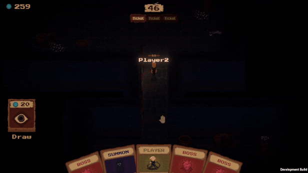 Each round, players take turns exploring this twisted circus, looting gear, avoiding traps, and racing to find the boss. But while one player explores, the others spectate... and interfere.