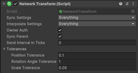 This component allows you to automatically network the Position, Rotation, Scale and parent of the corresponding transform to which it's attached.