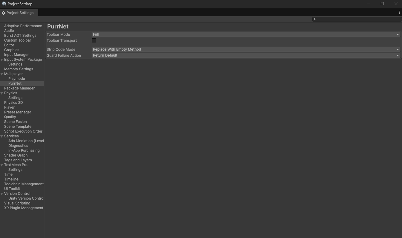 It will automatically strip all server specific code from all builds but Server builds. You can find the setting in Project Settings -> Multiplayer -> PurrNet -> Strip Code Mode, and simply set the desired strip mode.