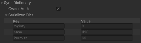 The SyncDictionary is custom serialized in editor, in order to make visual debugging easier.