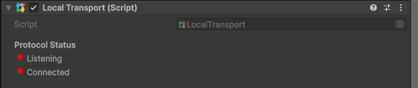 The local transport mimics how the Network acts, but never actually sends any data. This is great if you want your game to work in single player still using networking code and components, but doesn't require you to start a server or client.